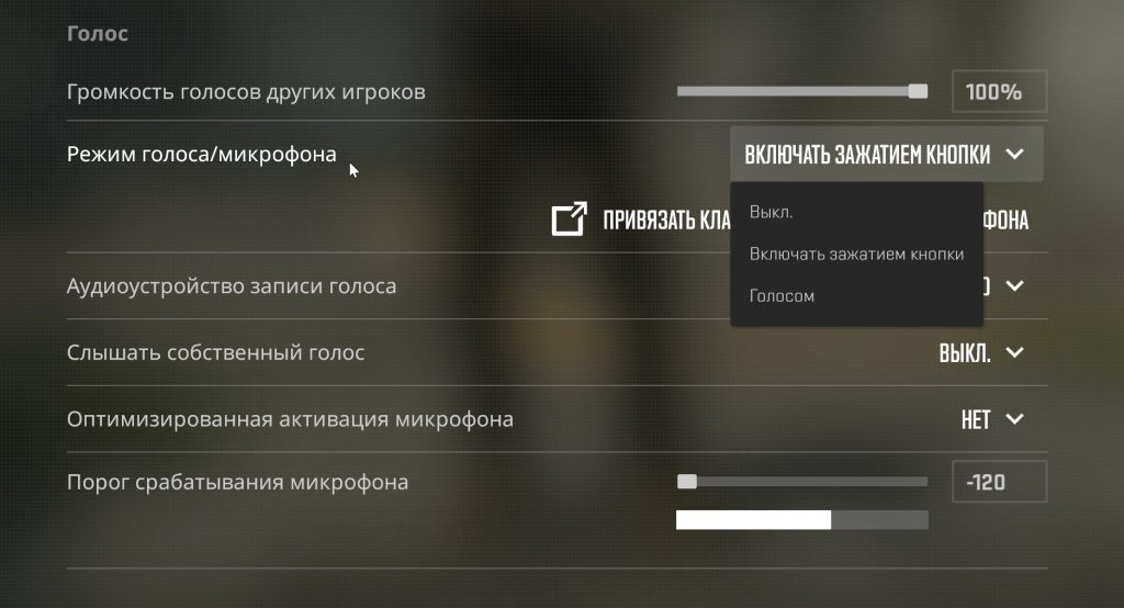 - В CS 2 зайдите: Настройки → Звук → Голос.